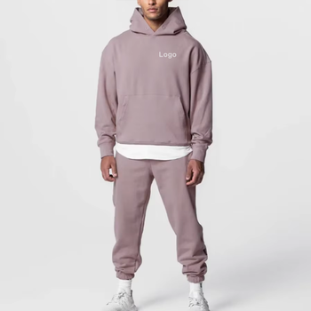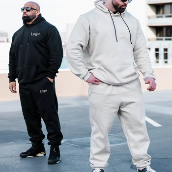 कस्टम कढ़ाई लोगो हेवीवेट लंबी आस्तीन जॉगर सेट फिटनेस स्ट्रीट पहने दो पीस मैन कांगारू पॉकेट हूडी ट्रैकसूट
